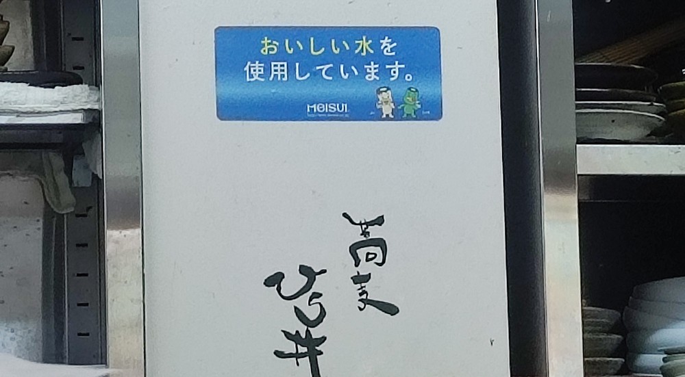 食後にカウンター越しに見た厨房の奥に「おいしい水を使用しています」というラベルを発見。やはり水にも拘りがあるようです。