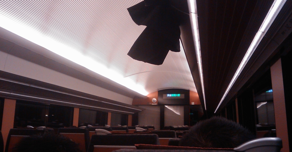 疲労も結構な状態だったので、帰りはロマンスカーにしました。なんか車両故障だかで代車になっており、今まで乗ったことのない青いロマンスカー MSE に乗ることになりました。ちょっとラッキー♪