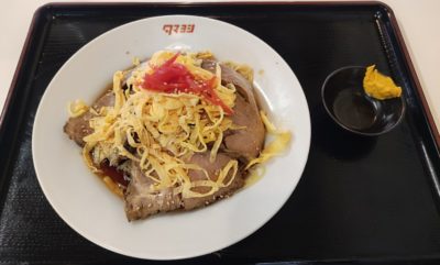 4枚のチャーシューはそれほど味付けが濃いわけでもないですが、シッカリと身が詰まったようなガッシリ感があって食べ応えがあります。豚版なローストビーフみたいな感じです。これもそのまま食べるより、冷やし中華の甘酢タレをシッカリ染み込ませてから頂くのがよろし。