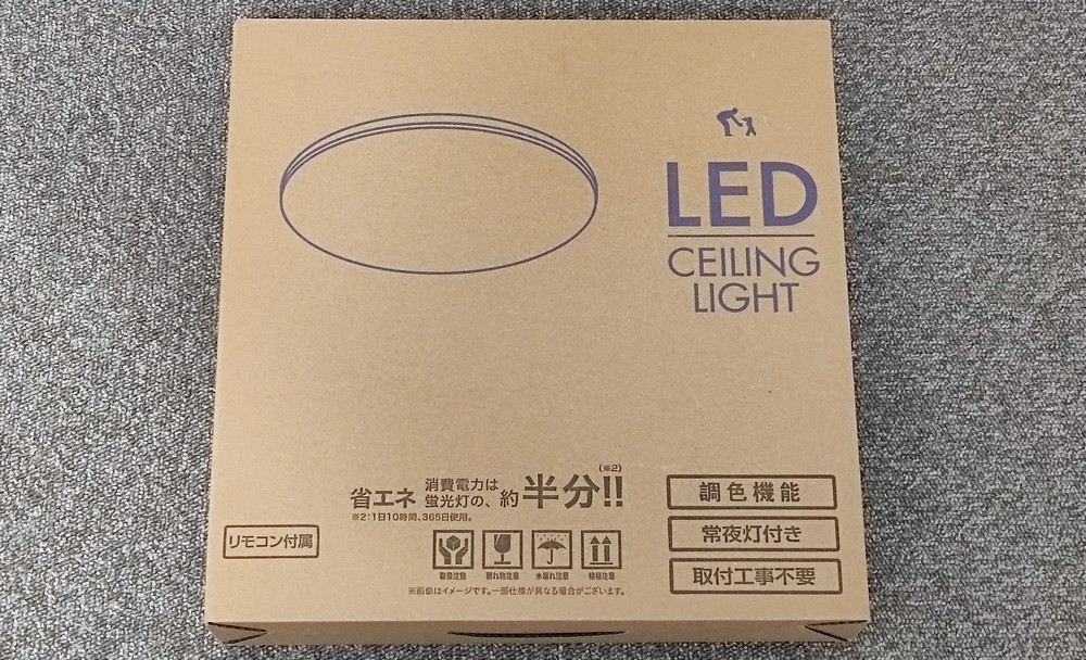 その中の一つが、LED シーリングライトです。色々と悩んで、最終的にコレになりました。検討中にはなかった300円オフなクーポンが出現して(アプリで見たからかも⁉)、2,419円でした。すっかり LED シーリングライトも安くなりましたなぁ・・・