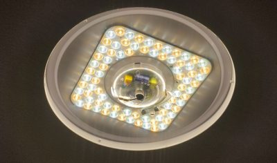 円形のシーリングライトですが、中の LED アレイは矩形に配置されています。