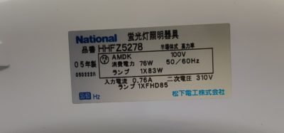 2005年製で78W。結構長らく使っていますねぇ。8~10畳用と、割と明るいタイプでした。
