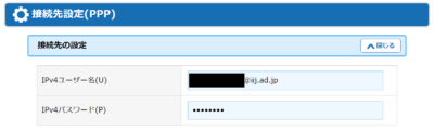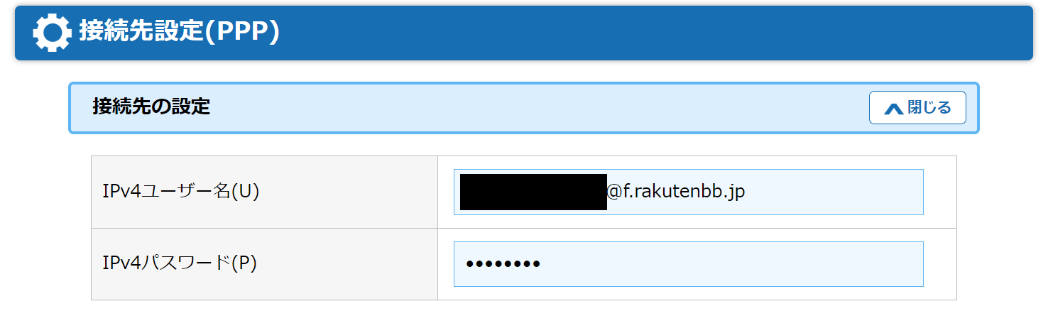 PPPoE の接続先設定は、楽天ひかりのものが設定されていますので・・・