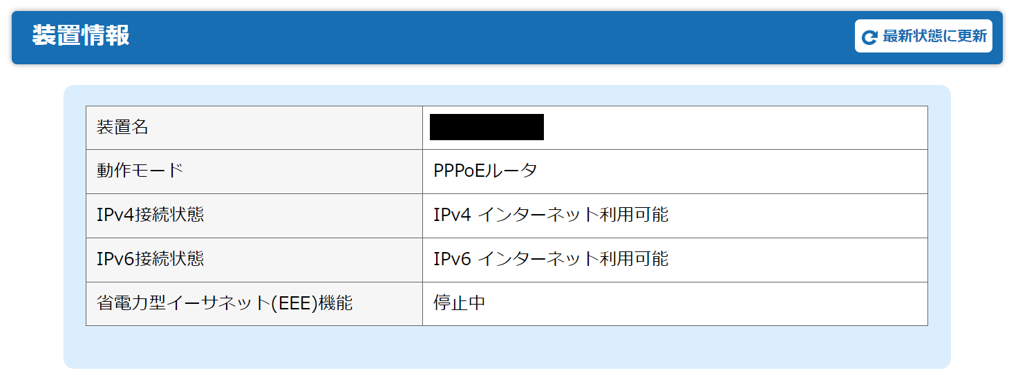 きっと切り替えができているだろうということで、午後イチにルータの設定を変更してみることにしました。元の状態はクロスパスで IPoE (IPv4 over IPv6) で動作していますが、これを PPPoE に変更します。