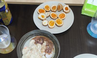 Kさん持ち込みな燻製玉子が超絶美味しかったです。ポテサラに塩辛ってのも、飲みのアテには良いっすねー。