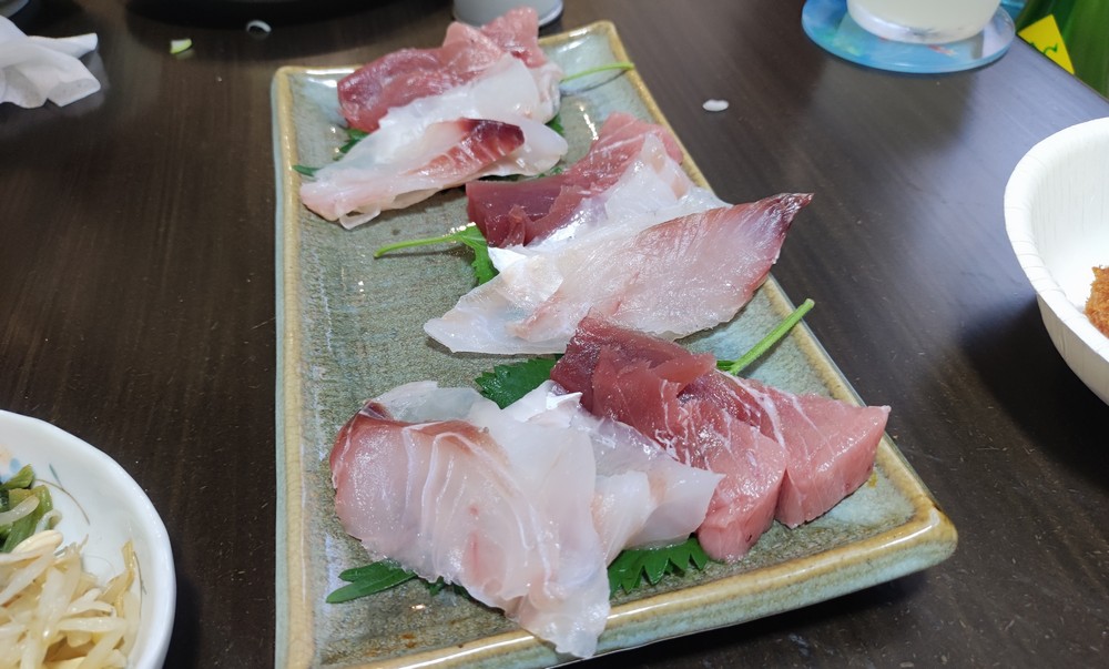 お刺身は半分は私の仕入れ。今回はクエとか珍しいものを調達。イサキやカンパチは私ですが、真鯛やマグロはI川君の調達品。