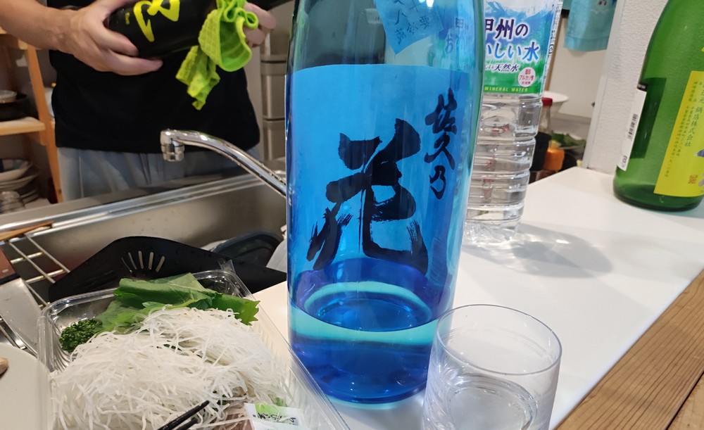 左から2番目の青い瓶は長野県の佐久の花酒造の「裏佐久乃花 辛口吟醸無ろ過直汲み」は辛口だけどちょっとドッシリした感じ。冬の魚に合いそうな感じですな。ラベルが反転しています。