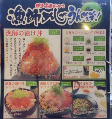 「漁師の漬け丼」が見た目のインパクトがあるのです。伊豆高原ビールのお店だけど・・・運転手なのでビールは無しです。