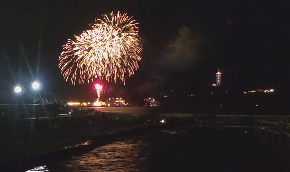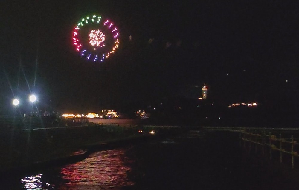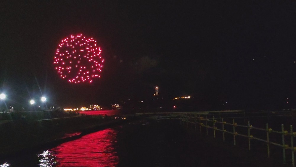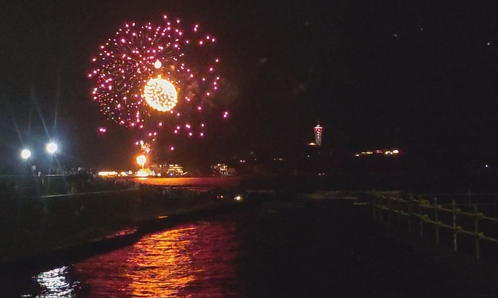 昨年は1週間の間、毎日短時間に打ち上げる感じだったのに遭遇しましたが、今年は2日に分けて、1日あたり20分という感じでの開催となったようです。大き目なヤツはなくて、派手さはちょっと控えめな感じでしたねぇ。