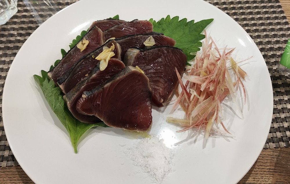 カツオはミョウガと塩で戴きました。ちょっとクセがあったけど、日本酒に合わせるならちょうど良い感じ。旨味凝縮って感じです。