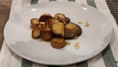 キノコ類の余った部分はもれなくバターでソテーに。コレも酒にアテとして絶品でした。