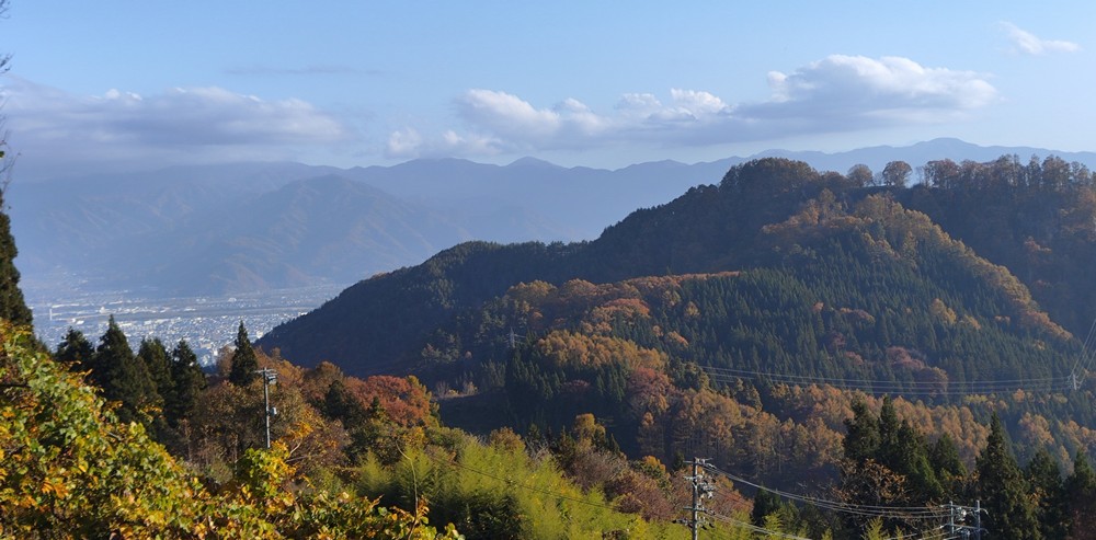 この農園から望む景色もなかなかです。左側には長野市街が見えてますので、もう少し下ったら下山完了という感じ。七曲りが曲者ですけどね・・・。