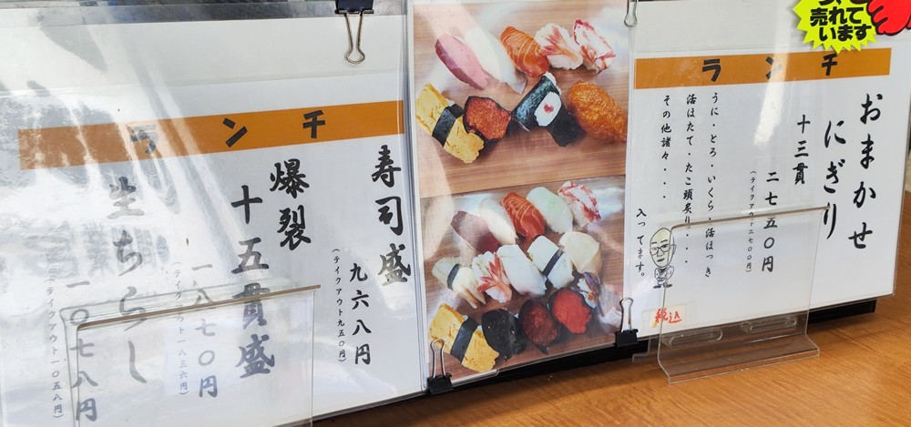 狙いはランチ限定な「爆裂十五貫盛」。税込1870円で、15貫の握りたてのお寿司がいただけるという。