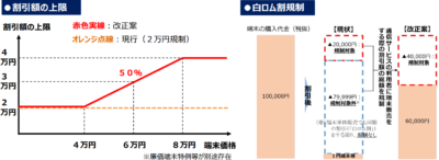 - 割引額上限の変更: 端末価格4~8万円なら50%まで、それ以上は4万円を上限に