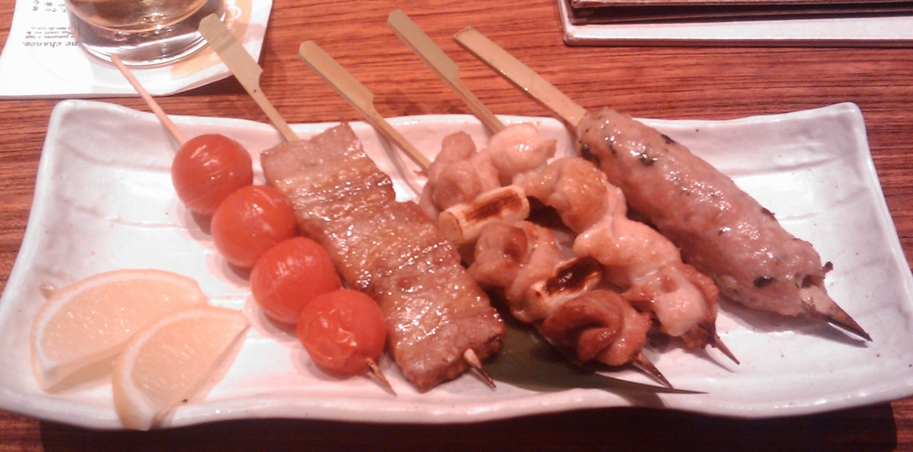 しばらくすると厨房で炭火で焼き上げた串焼き5種盛りが到着。どれも味わい深く柔らかくておいしゅうございました♪
