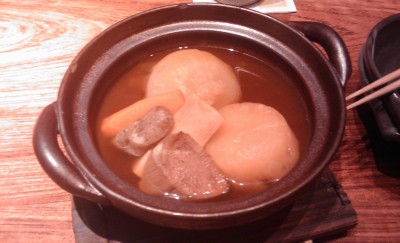 蛇足だったのですが、牛タンと野菜のおでん風を追加オーダー。大根とたまねぎがトロトロに煮込まれており美味しかったのですが・・・お腹いっぱいになりすぎ♪
