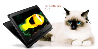 10.1インチの 1366×768 液晶はマルチタッチ対応。260(W) x 185(L) x 17~25(H)mm で、1.21kg とコンパクトさを売りにしていますが、普段持ち歩くにはちょっと大きいかな・・・脅威のバッテリーライフは健在で最大約10時間だそうです。