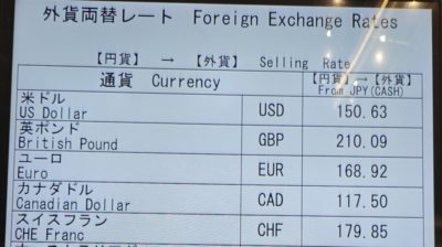 150.63円。Travelex と比べればかなり良いレート。150円を切るぐらいで交換したかったが・・・ここで1万円分だけ交換。66USD と若干の日本円でのお釣りとなりました。