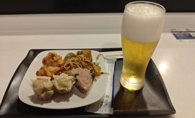 ビールメインな感じで唐揚げや焼売、焼きそばを取って1ラウンド目。焼売が美味しい♪ ビールは Super Dry 一択かと思ったら、奥の別エリアにあるドリンクバーには黒ラベルと一番搾りのサーバがあったことに・・・後で気付きました。