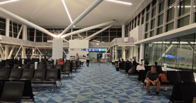コーヒー飲んだりしてユックリした後は、搭乗ゲートへ。今回は141番ゲートという、一番遠い場所。時間に余裕を持って移動するのが吉。