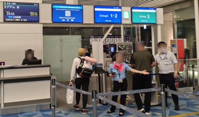 時間が来たら荷物を預けてセキュリティーゲートを通って出国手続き。混雑していなかったのでスムーズに出国できました。実は出国後エリア内でみかけた両替所は149円後半というトコロがありました。とはいえ、出国しちゃうと後戻りできないので判断が難しいトコロです。