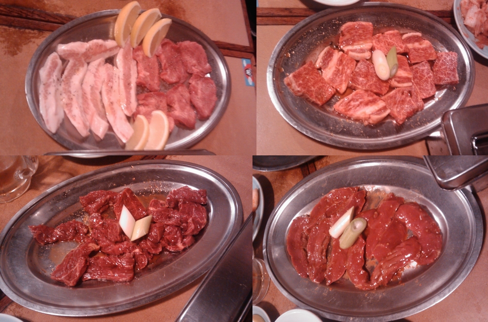 左上から「牛タン塩プラストントロ」「上カルビ」「牛ハラミ」「牛ハツ」。他にも「ロース」をオーダー。