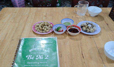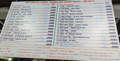 そして、すぐ近くの Hải Sản Bé Ni 2 へ。このお店、昨年お腹壊した原因みたいな感じになっていましたが・・・実はその後の考察により、発症時間等からこのお店が原因ではなく、その前に間違って入ったブンチャーカーのお店が原因だったのではないかというのが有力説になっていました。