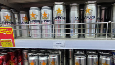 この SAPPORO ですが、黒ラベル等とは異なる、アジア地域で売られている特別なサッポロビールです。別の日にスーパーで見かけたコレと同等だと思われます。味は黒ラベルより少し軽い感じもしますが、日本の料理に合う、シッカリした苦味も感じられるビールですな。