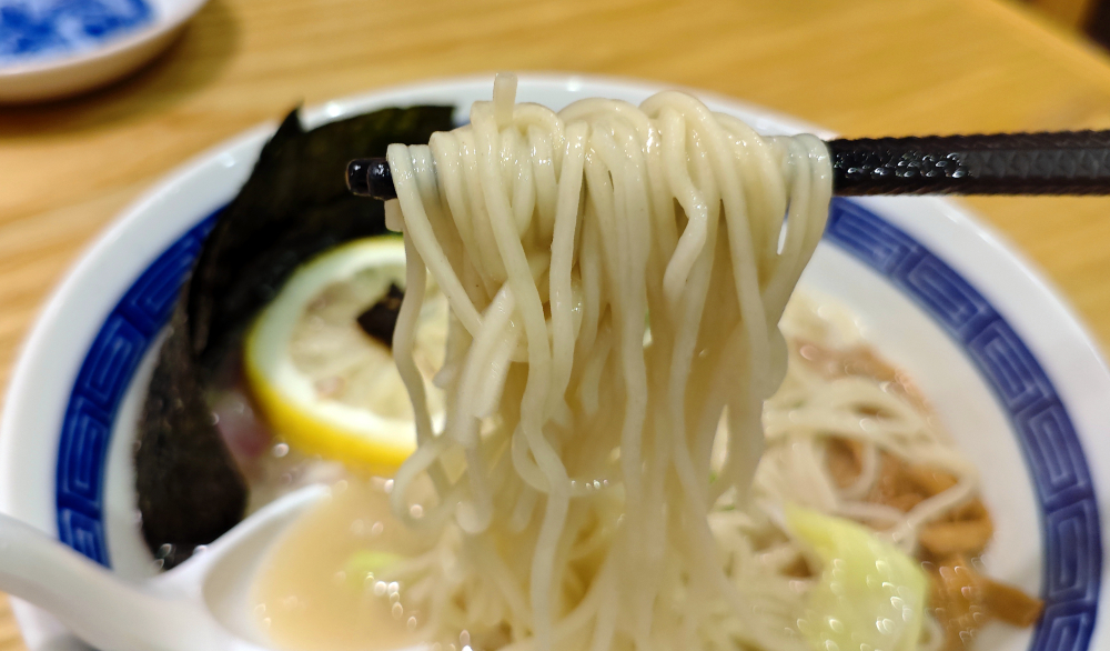 さて、私の鶏白湯ラーメンですが・・・スープは結構ドロリと濃い目。鶏の脂が結構出ていて、最初はイイかなと思ったけど中盤から後半はシンドクなる感じ。レモンでアッサリするかと思いきや、ほとんど効果なし(笑)。そして、麺がユルユル。茹ですぎな感じですな。調理時間をちゃんと守れてない感じかも。低温調理っぽい鶏チャーシューは柔らかいけど、スープの濃い味に負けちゃってあまり味がわからない状態。933円のラーメンと考えたら、残念ながら再訪は無いなぁ・・・といった具合。ま、何事も経験ですw