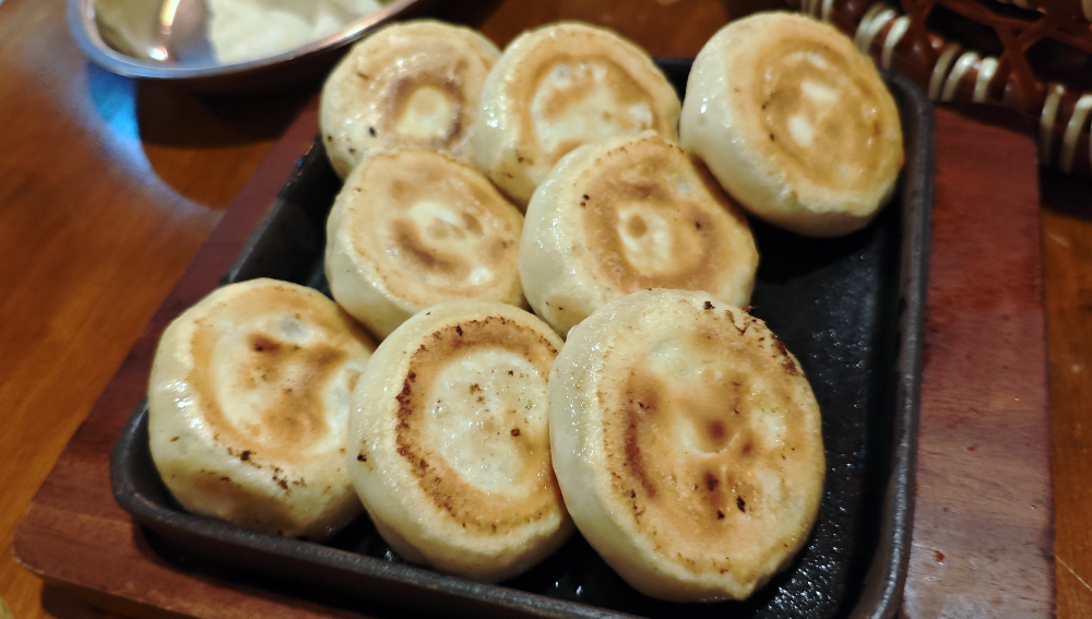 丸いのは鉄鍋餃子です。アツアツだと火傷しそうな感じで、中から汁が出てきます。