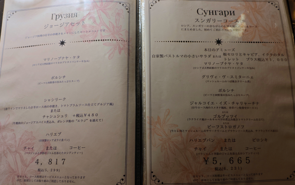 ディナーのコースは2択。悩みましたが、スンガリーコースにしました。