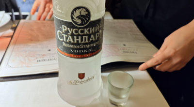 ロシア産のビールがあったハズ・・・とY本氏が店員に聞くと、現在は取り扱っていないそうです。もしや、輸入規制の影響かな?? そんなわけで、1杯目からウォッカです(笑)。ルースキー・スタンダルド。スッキリしてて美味しいです♪
