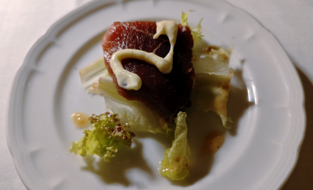 アミューズは自家製パストルマをチョイス。干し肉ですな。お酒に合います♪