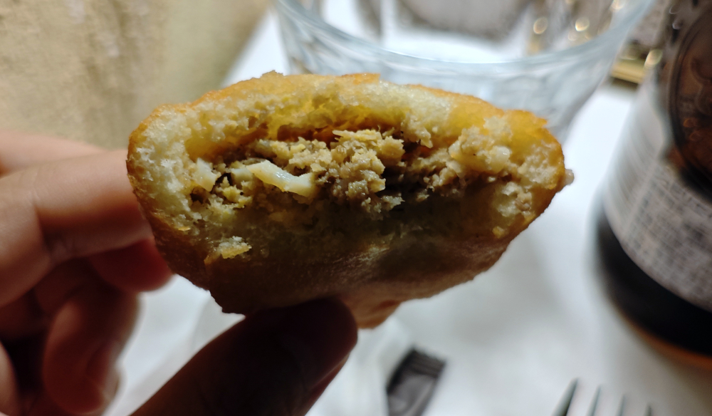 見た目はカレーパンみたいですが、お肉やらタマネギとか、具沢山。これまたお腹にたまります。