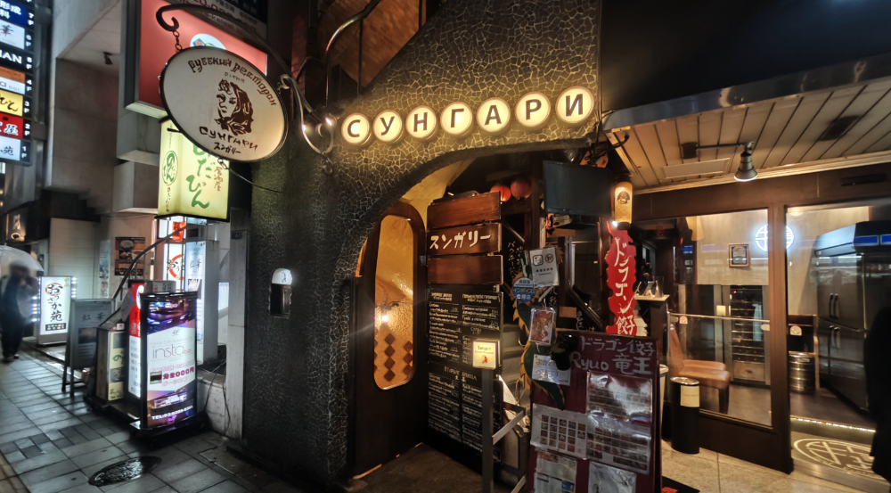 その後食事にやってきたのはスンガリー。昔Y本氏とスバルビルにあった店舗に行ったことがありました。こんなご時世ですが、ロシア料理です。今回は新宿東口本店。入り口は1階の通り沿いにありますが、お店自体は階段降りた地下です。