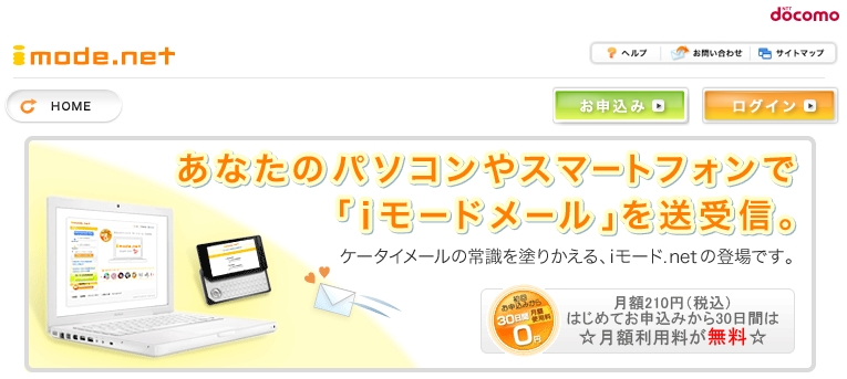 そんな状況を打破するべく、iMode.net を契約してみました。月額210円のオプションプラン(初回30日間は無料)ですが、これにより、WEB 経由でiモードメールの閲覧、送信が可能になります。