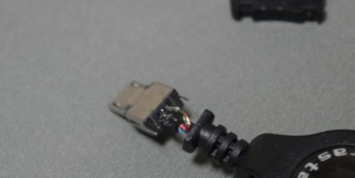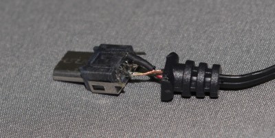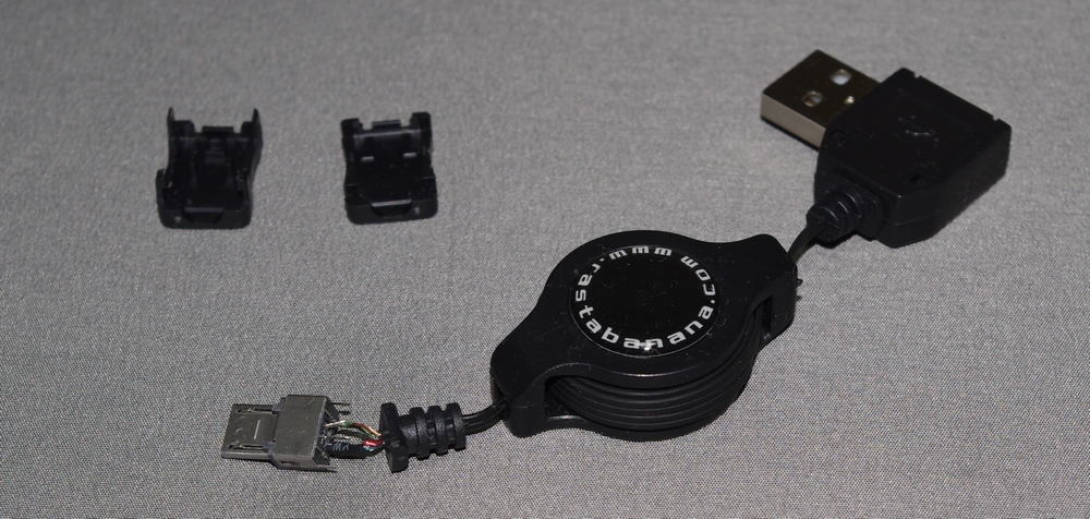 このケーブル、MicroUSB 側のコネクタ部分が容易に分解可能です。改造にはもってこい♪