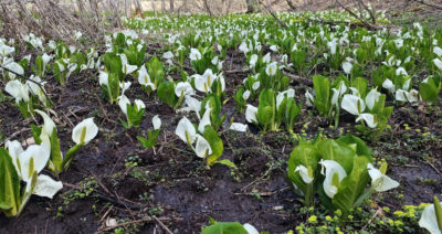 池の北側にも水芭蕉が群生していましたので、ココでも十分でした(笑)。