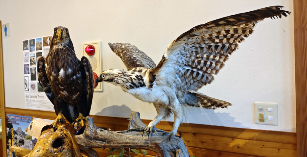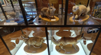 シカ等の動物のはく製や、鳥のはく製が数多く展示されています。結構貴重なモノも多そうで、ガラスケースに入ったものも多いのですが・・・