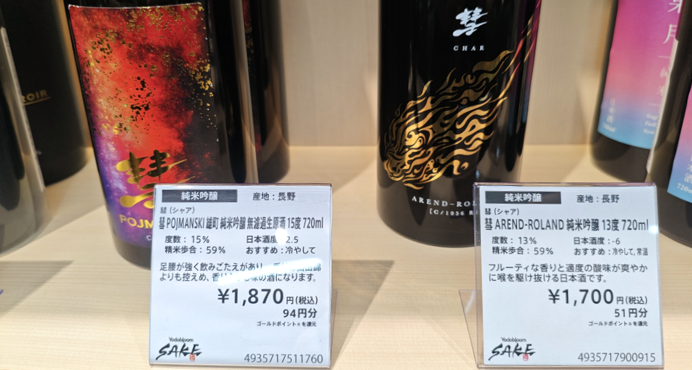 ちょっとココで蛇足。焼肉行く前に、ヨドバシ梅田に立ち寄ったのですが、なかなか面白いエリアがありました。Yodobloom SAKE 梅田店という、日本酒テーマパーク。全国各地の日本酒が売っているだけでなく、角打ちのような感じで、ガイドを受けながら試飲することもできるらしい。最終日に時間があれば寄ろうか・・・なんてハナシをしていましたが、色々あって寄らずじまいでした。なかなか見かけない日本酒も多く揃っているので、見てるだけでもなかなか楽しい。彗(シャア)なんて日本酒があるんですな(笑)。