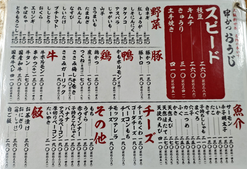 割とお手頃価格な気がします。とはいえ、以前に新世界のお店に行った頃はもっと安かった思い出があったりします。