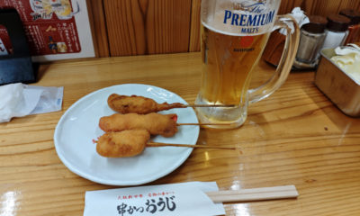 揚るの待っている間にビールが減ってしまった(笑)。やっぱり串かつと言えばビールです♪
