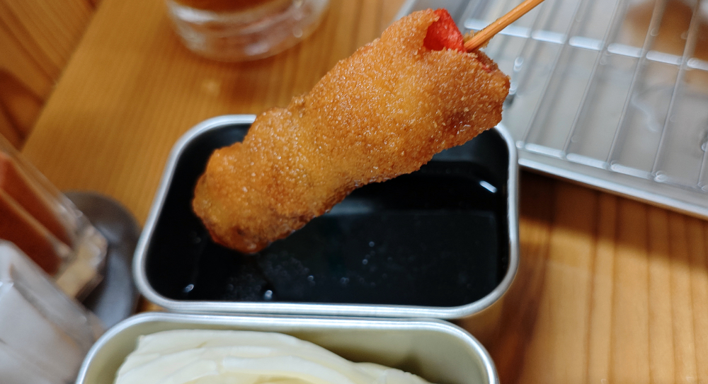 そんな隙間時間をついて、せっかくなので串かつ行っておきます。あまり遠くに行くと順番が巡って来た時に対応できないので近場で・・・と入ってみたのが、串かつ おうじ なんば千日前店。