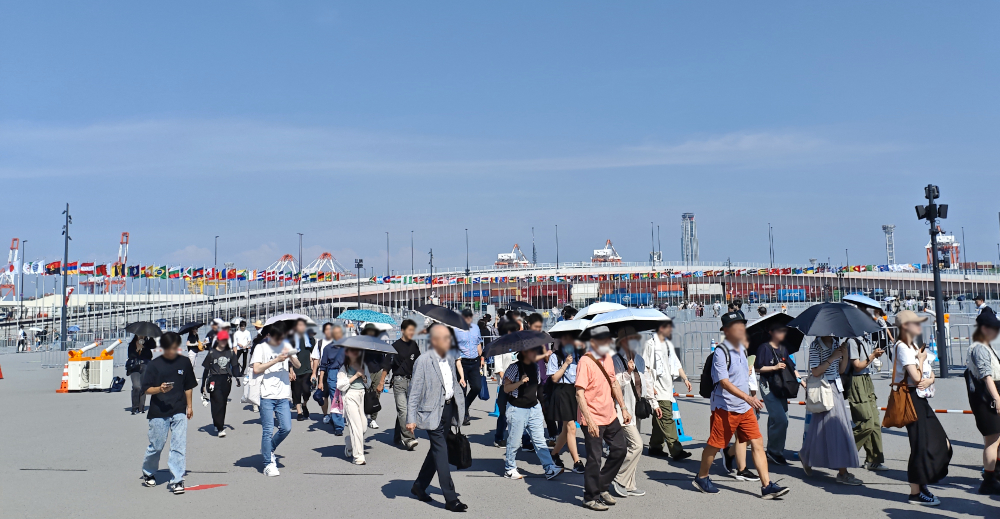 まだ日が高くて暑いので、大屋根リングの内部の日陰を歩きます。事前予約では1つだけパビリオンが当選しているのですが・・・当日予約は全然ダメでした。そんなわけで、予約済1件と、予約無しで並んで入場するパビリオンを見て回る感じです。