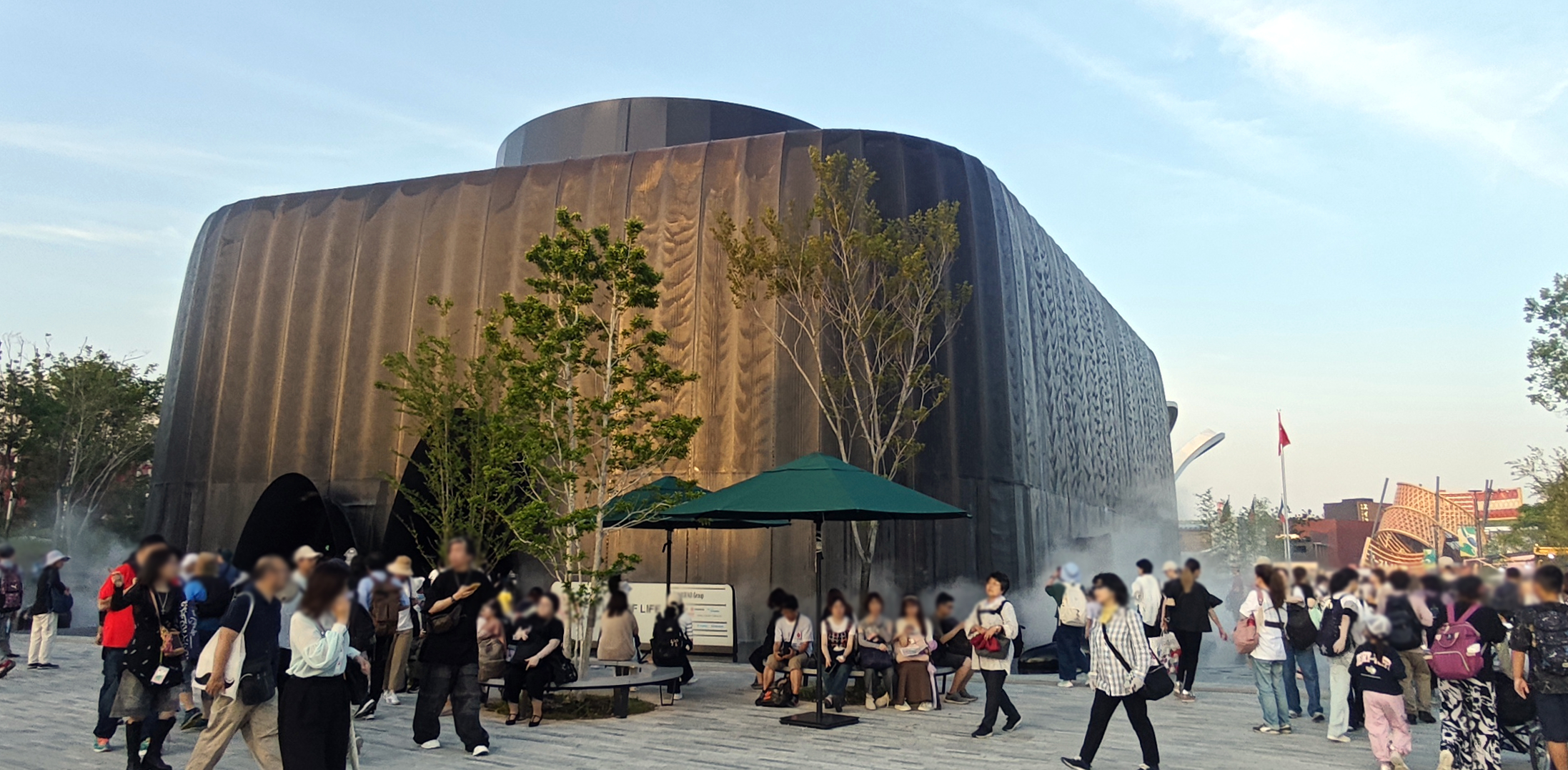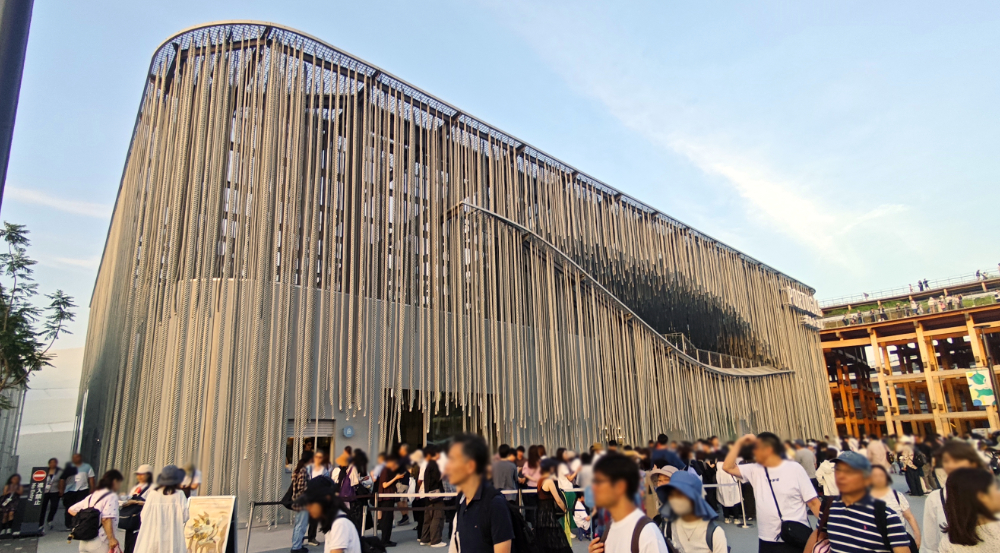 シグネチャーパビリオンな「いのちの未来」も建物がなかなか面白いです。全体が水で覆われたかのような演出。