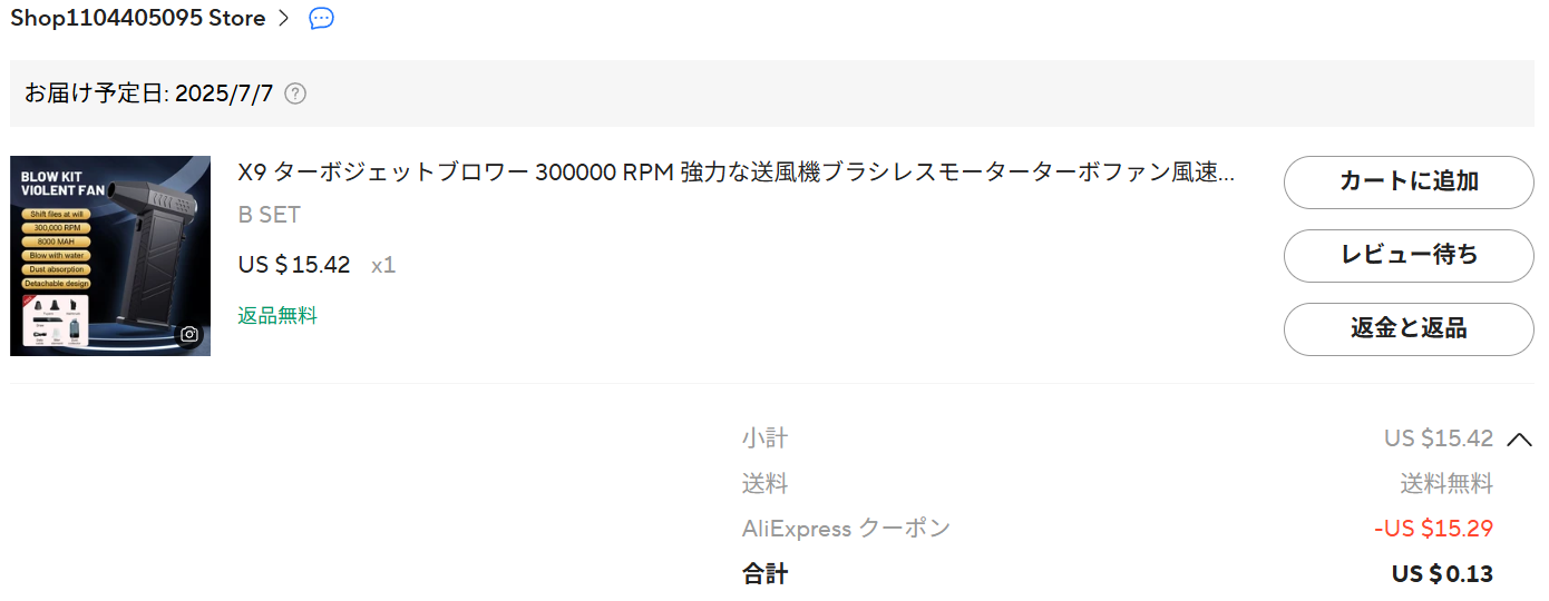 実は6月頃に期限切れなクーポンの使い道に困って、前々からちょっと気になってたコレが $15.42 と安かったのを発見。ガッツリとクーポン突っ込んで $0.13 という、もはやアリエク運営が損しているレベルでゲットしたモノ。発注翌日に発送され、1週間ほどで着弾。前回紹介の電動スクラバーよりも前に到着していました。