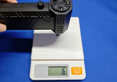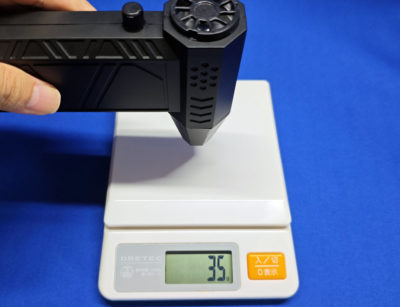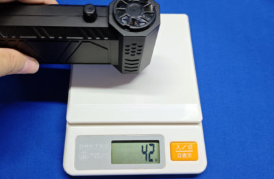 風量を最弱状態にしても同様でして、アタッチメント付けると 42g → 35g に下がります。