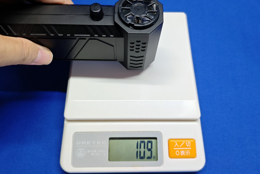 そして X9 はですね・・・アタッチメント無しの最大風力で、なんと 109g (爆)。リズム時計のヤツの5倍以上のパワーでした!!