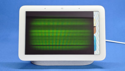 しかし、先月くらいに画面を見たら、一気に不調具合が進行していました。9割近くの領域が黒と緑で覆われて、もはやスマートディスプレイとしての機能を果たせない状態。