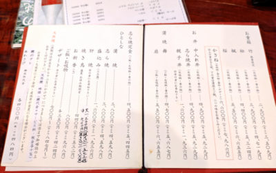 メニューはこんな感じ。うな重は竹→松→楓→桜→かさねとグレードアップしていく感じ。